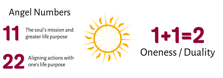One plus one is two, which represents duality and opposites. Life, the divine that only knows wholeness, can only experience itself through separation, and so the number two is very important to anyone incarnate. With duality, tension is created, which seeks resolution, but also adds interest. In perfect contentment there is no learning. With opposites, the divine can experience itself, with the goal of bringing it all back into oneness.